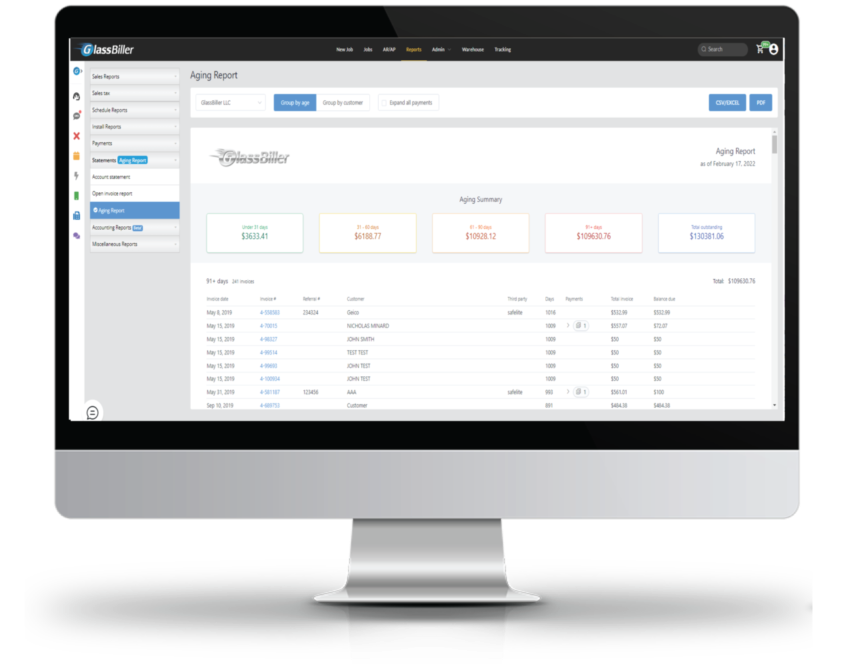 With GlassBiller, you have the ability to generate custom reports from raw data. Most reports are available to download in a PDF or a CSV format.