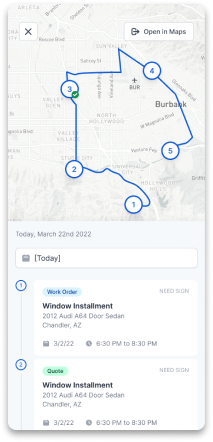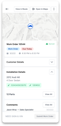 Once connected to your shop, technicians can start receiving digital work orders. Your installer will see upcoming jobs, locations, where glass is ordered, and more! No need to call the shop. Simply check the GlassBiller app and all the information you need will be right at your fingertips.